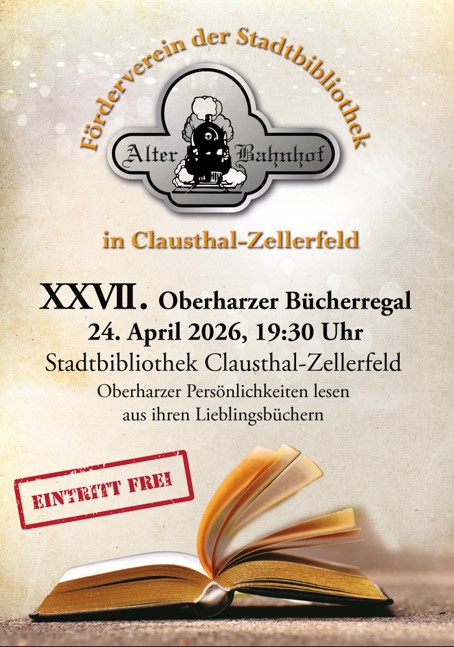 Eine Institution für Menschen, die gerne lesen und sich über das Gelesene austauschen, ist das „Oberharzer Bücherregal“. Diese Veranstaltung wird zweimal jährlich (im Frühjahr und im Herbst) vom Förderverein innerhalb der Räumlichkeiten der Bibliothek organisiert. Dabei erhalten Bürgerinnen und Bürger unserer Stadt die Gelegenheit, ihre Lieblingsbücher vorzustellen und daraus vorzulesen. Eine kleine Pause bietet jeweils Zeit, um ein wenig zu plaudern und um sich mit einem Getränk sowie kleinen Snacks zu stärken. Die Veranstaltung erfreut sich seit ihres Starts 2007 steigender Beliebtheit. Da viele Zuhörer regelmäßig vorbei schauen, kann man schon fast von einer familiären Atmosphäre sprechen. Der Förderverein freut sich aber auch immer über neue Gäste.